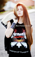 It is more than obvious that the burgundy leather from the boots are matching the red tone from the Metallica's shirt. As always, to follow the outfit, I always wear the same silver spiked accessories.
